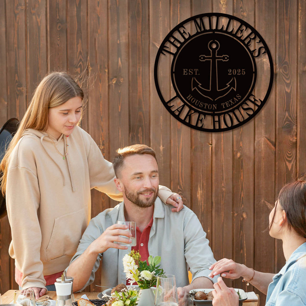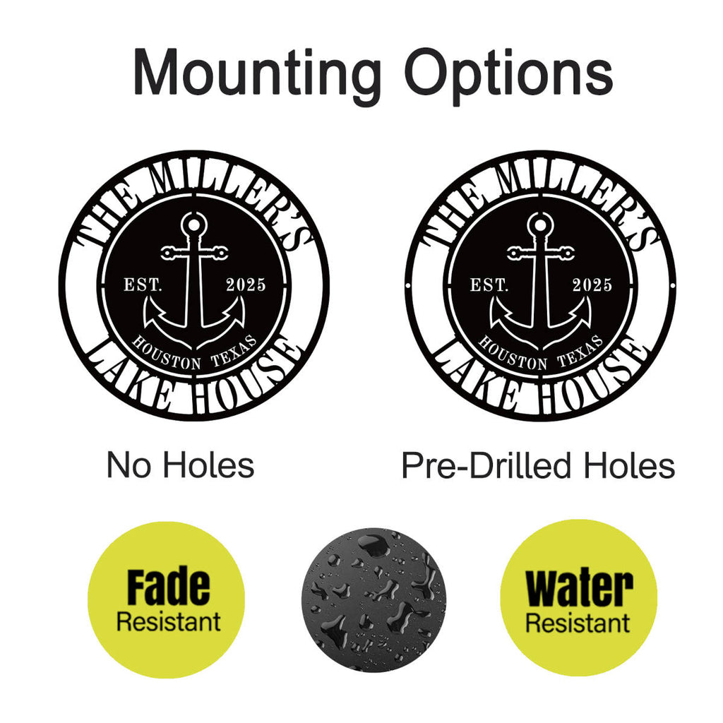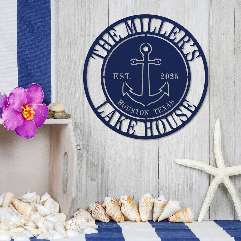Create a one-of-a-kind Custom Anchor Metal Sign to celebrate your family, lake house, or coastal retreat. Made from premium steel, this round sign features a detailed anchor design surrounded by your personalized text — perfect for displaying your name, location, and year. Each piece is laser-cut for clean precision and finished with a durable powder coat in your chosen color. Designed to last for years indoors or outdoors, it adds a timeless nautical touch to any space. Multiple sizes and colors are available, and pre-drilled holes make installation simple and secure.