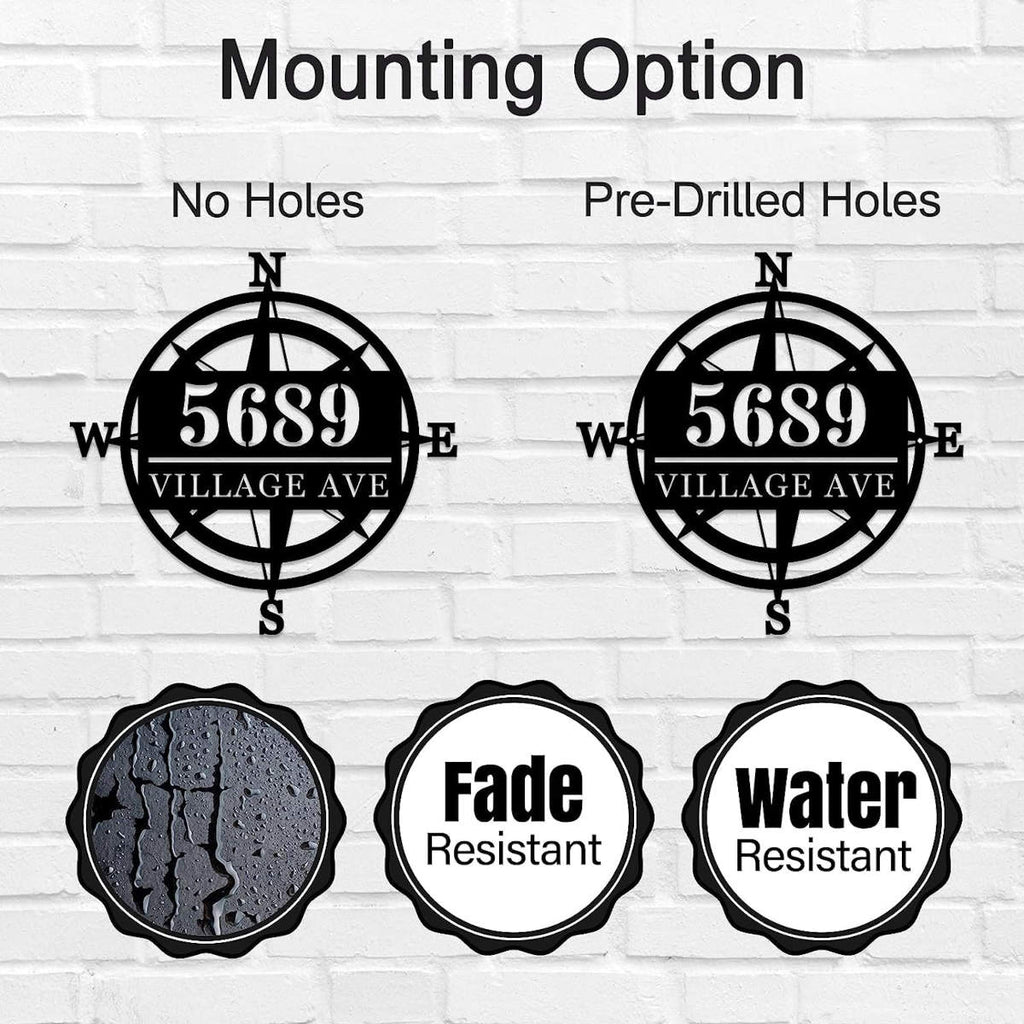 Enhance the curb appeal of your home with this elegant Compass Address Sign. Crafted from high-quality 14-gauge steel, this sign is perfect for adding a personalized touch to your exterior decor. The sign is laser-cut to precision, ensuring clean and intricate designs. After cutting, the surface is meticulously cleaned and finished with a durable powder coat, providing long-lasting protection against the elements.