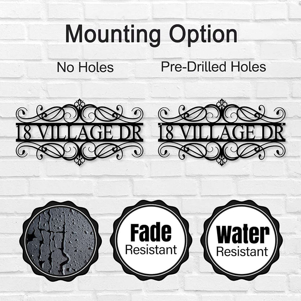 Upgrade the exterior of your home with our elegant Custom Address Sign. Crafted from robust 14-gauge steel, this sign features an intricate scroll design with your personalized address prominently displayed in the center. The laser-cut precision ensures clean lines and a high-quality finish, while the powder coating adds durability, protecting the sign from the elements. Available in multiple sizes and colors, this address sign can be tailored to match your home's aesthetic perfectly. The pre-drilled holes make installation easy, whether you’re mounting it on a wall, a post, or a gate. Ideal for enhancing curb appeal, this custom address sign not only makes it easier for guests and deliveries to find your home but also adds a touch of sophistication and style to your property.