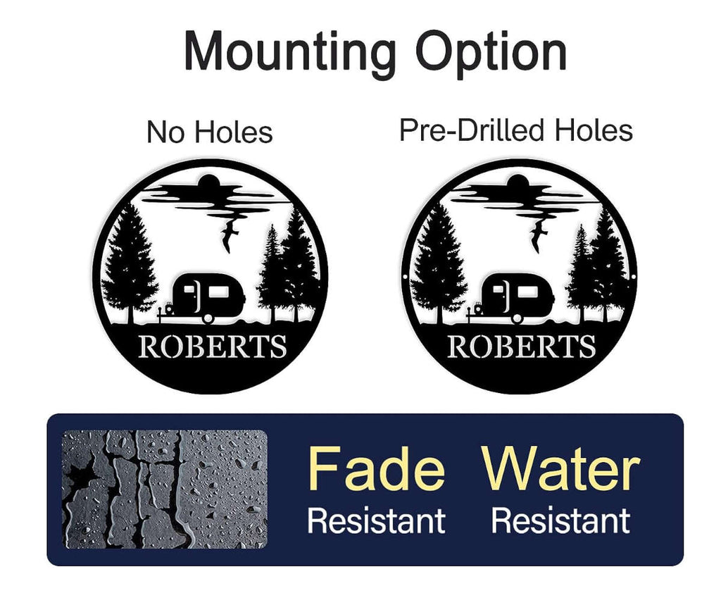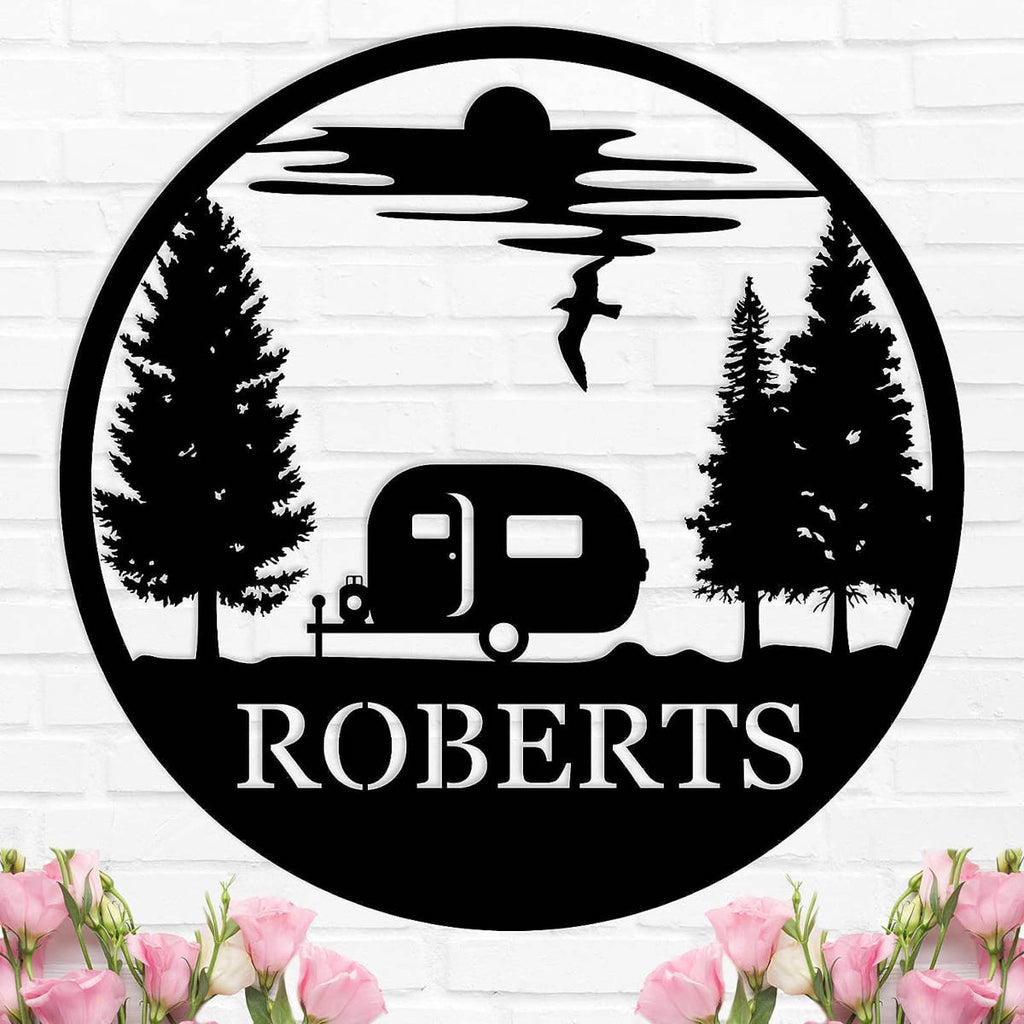 Introducing our Custom Camping Metal Sign, a perfect addition for outdoor enthusiasts and campers. This unique piece features a serene campsite scene with trees, a trailer, and birds against a backdrop of a full moon. Crafted from 14-gauge steel, it’s cut with precision using advanced laser technology. After cutting, the sign is cleaned and powder-coated for a durable, weather-resistant finish. The text and design elements are customizable, allowing you to add your name, campground, or special message. Available in multiple sizes and colors, this sign is a perfect personalized gift for any camper.