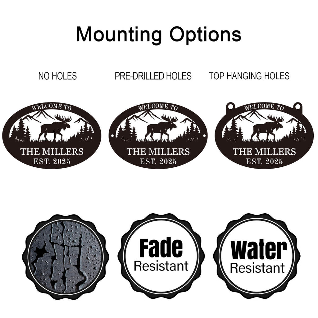 Bring rustic elegance to your home, cabin, or lodge with this personalized moose metal sign, crafted from premium steel for lasting durability. Each piece is precisely laser cut and finished with a protective powder coat in the color of your choice, ensuring a beautiful and weather-resistant finish. Featuring a majestic moose with mountain and forest details, this sign makes a bold statement in any space. Customize the text with your family name, welcome phrase, or meaningful words to make it truly yours. Available in multiple sizes and colors, with optional pre-drilled holes for easy mounting indoors or outdoors.