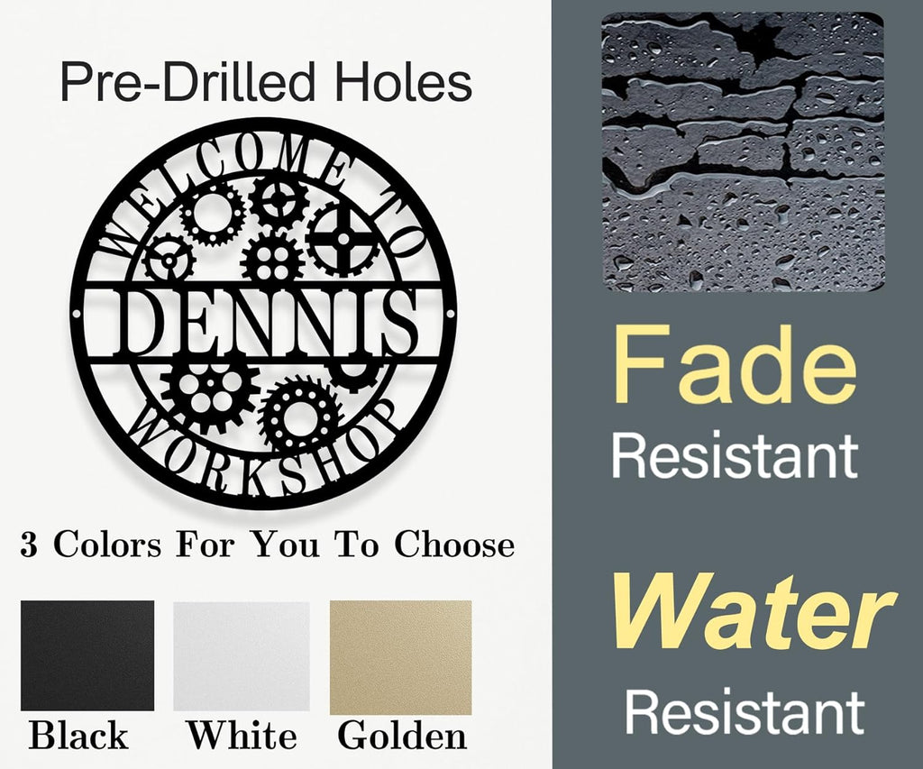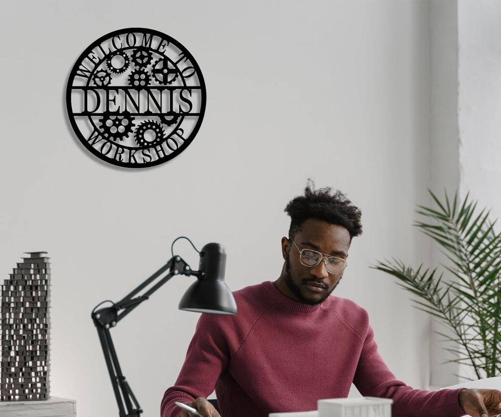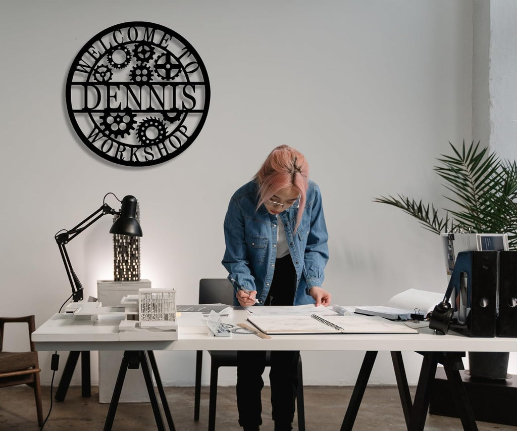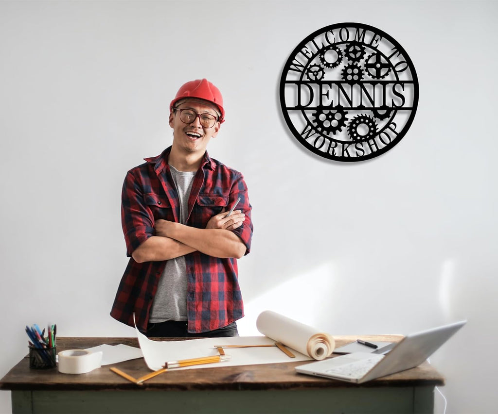 Add an industrial edge to your garage, man cave, or workspace with this Custom Workshop Metal Sign. Crafted from premium steel, this sign is precision laser cut and powder-coated for maximum durability. The intricate gear design and customizable text—perfect for names or welcome messages—make it a bold statement piece. Available in various sizes and colors, it suits any décor. Whether hung indoors or outdoors, this sign is built to last. The double-circle layout adds visual balance, and optional pre-drilled holes allow for quick and secure wall mounting. A personalized touch for any craftsman’s corner.