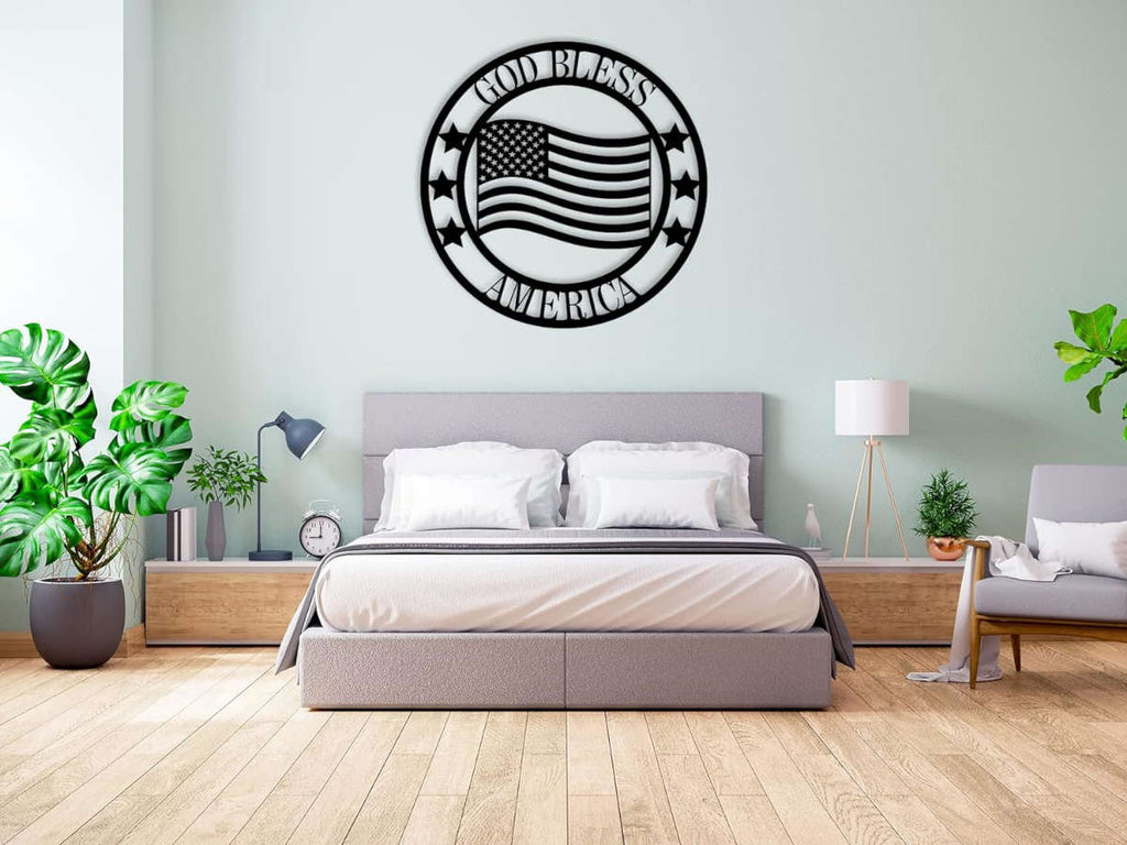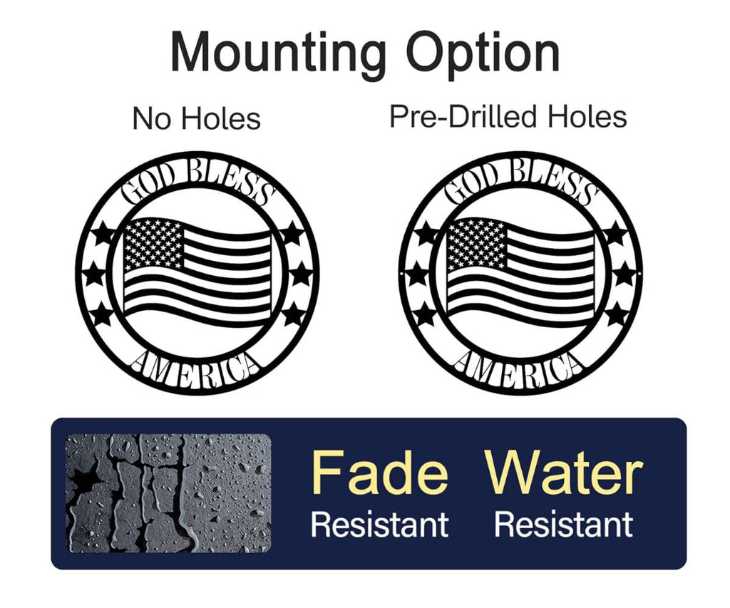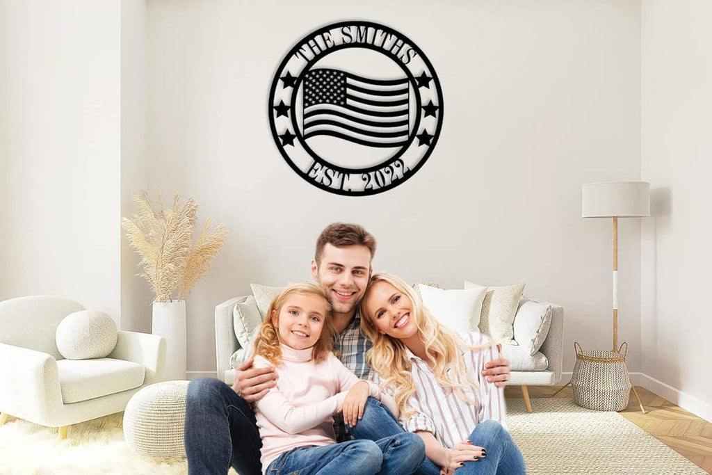 Elevate your home decor with our exquisite Custom American Flag Steel Decor. Meticulously crafted from robust 14-gauge steel, this circular masterpiece showcases the iconic American flag. Personalize it with your name, established year, and choose from various size and color options. The precision laser-cutting and powder coat finish ensure durability and longevity.