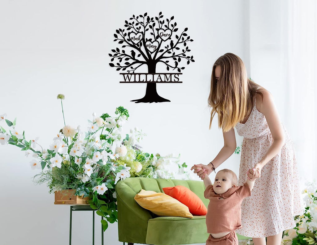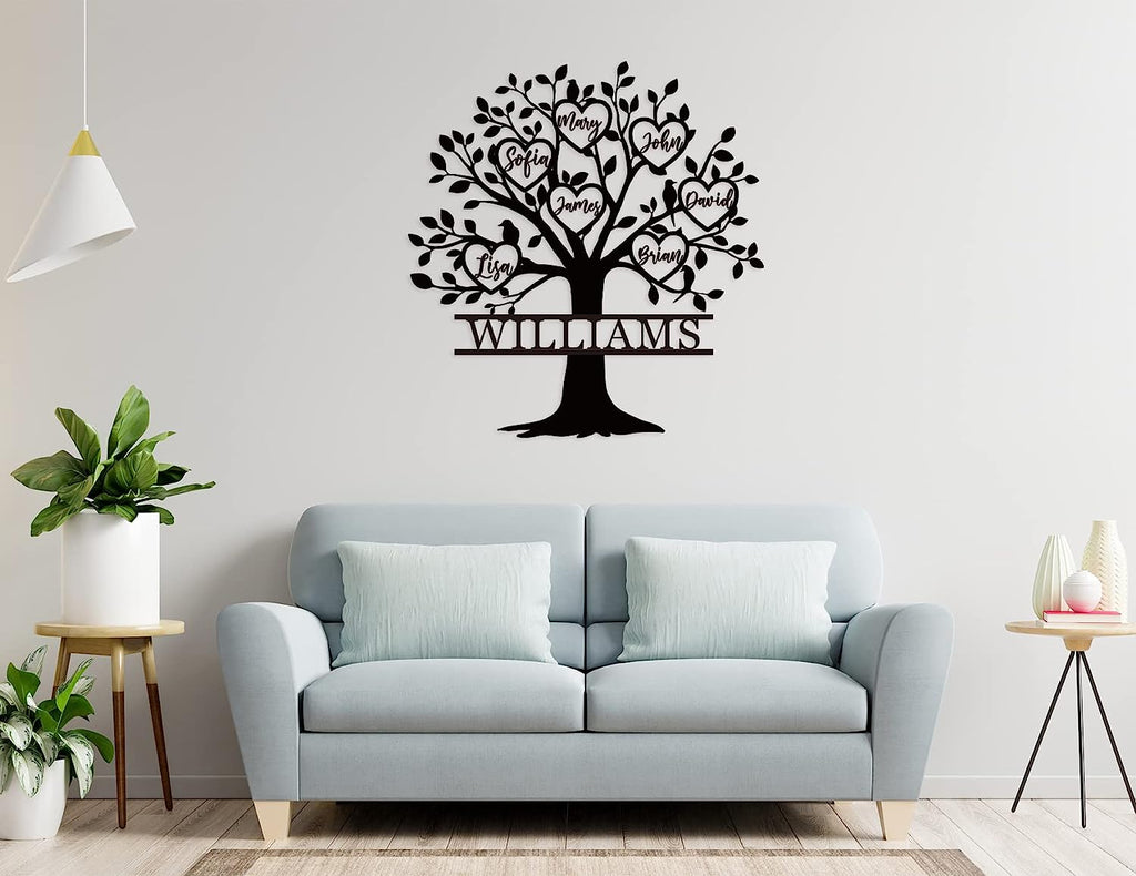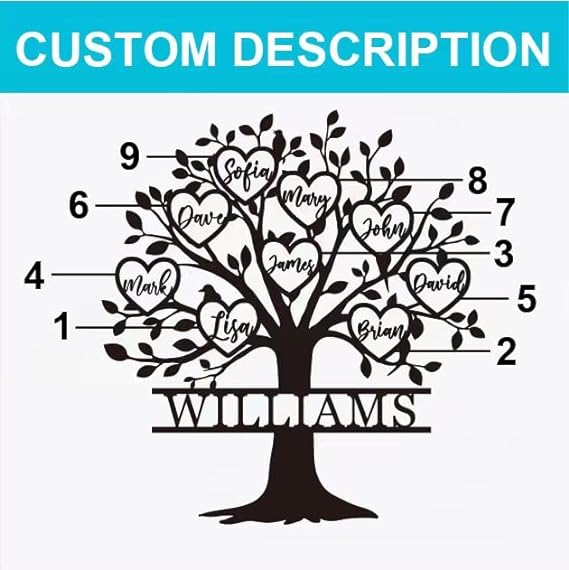 Celebrate your family's legacy with our exquisite Family Tree Metal Sign. Crafted from high-quality 14-gauge steel, this personalized piece showcases a beautiful tree design with heart-shaped leaves, each inscribed with the names of your loved ones. The sturdy construction ensures durability, making it perfect for both indoor and outdoor display. Each sign is meticulously laser cut, cleaned, and powder-coated for a smooth, weather-resistant finish. Customize the names and add a special touch to your home decor, or gift it to someone special. Available in various sizes and colors to suit your preference.