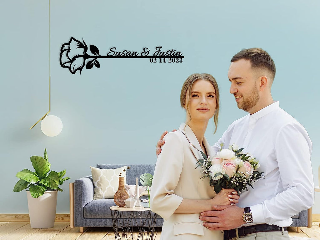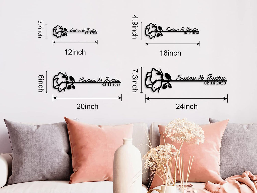 Elevate your decor with our Custom Metal Rose Plaque. Crafted from durable 14-gauge steel, this stunning horizontal rose design adds a touch of elegance to any space. Each piece is meticulously laser-cut, meticulously cleaned, and powder-coated to perfection. With various size and color options available, our plaques are not only beautiful but also built to last. Personalize the rose branches with your names and a memorable date, making it a perfect gift for weddings, anniversaries, and Valentine's Day.