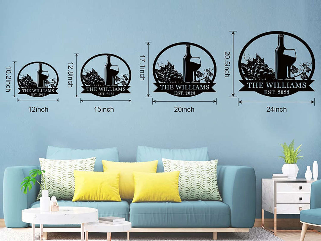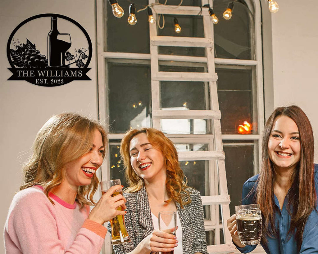 Elevate your wine experience with our stunning Personalized Wine Bar Sign. Handcrafted from durable 14-gauge steel, this custom wall decor features an exquisite design. Laser-cut, cleaned, and powder-coated to perfection, it's available in various sizes and colors. Ideal for wine enthusiasts, this sign adds a touch of elegance to any wine bar. Personalize it with your name and established year for a unique touch.