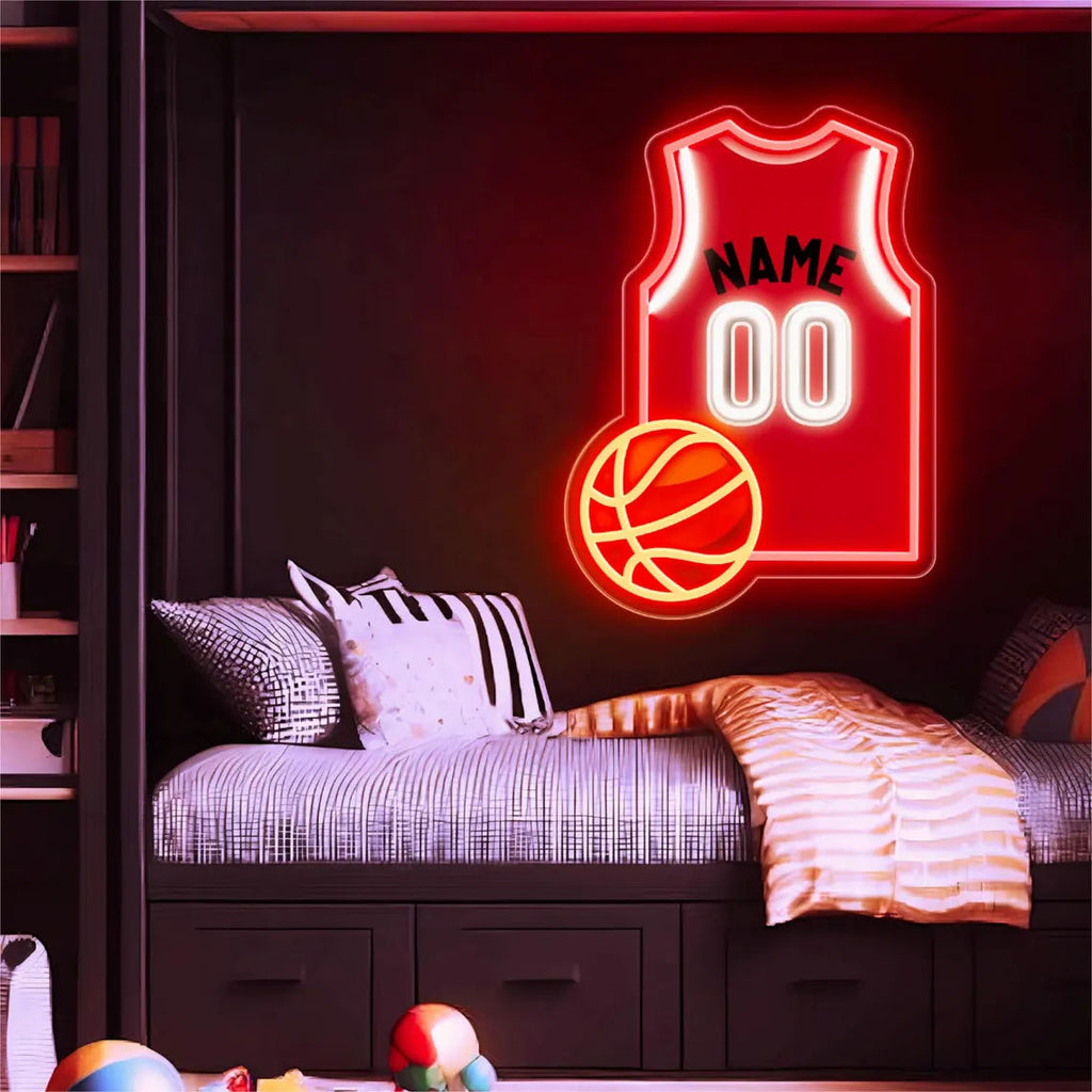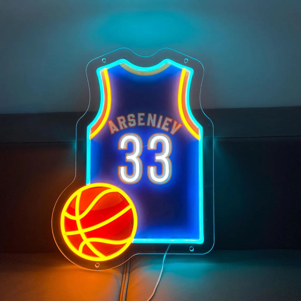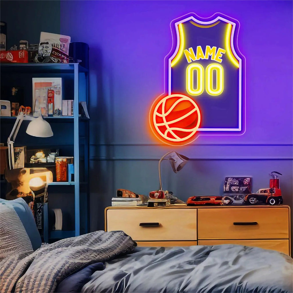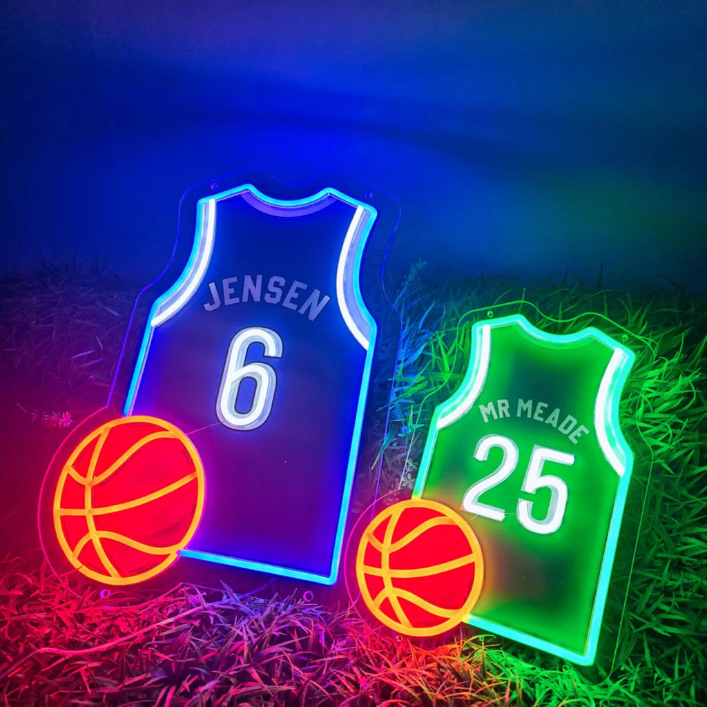 This custom basketball jersey neon sign transforms legendary moments, personal milestones, and pure fan passion into a glowing work of art. Inspired by the jerseys worn by the greatest athletes in the game, each sign uses high-quality LED neon to recreate the explosive energy of NBA highlights. When LeBron’s iconic 23 becomes a radiant light totem, when Curry’s 30 casts a three-point glow across your game room, these aren’t just decorations—they’re living memories. Every curve of the neon captures the arc of a championship banner, echoing the Bulls’ red storm, the Lakers’ purple-and-gold glory, and the Warriors’ electric blue dynasty.