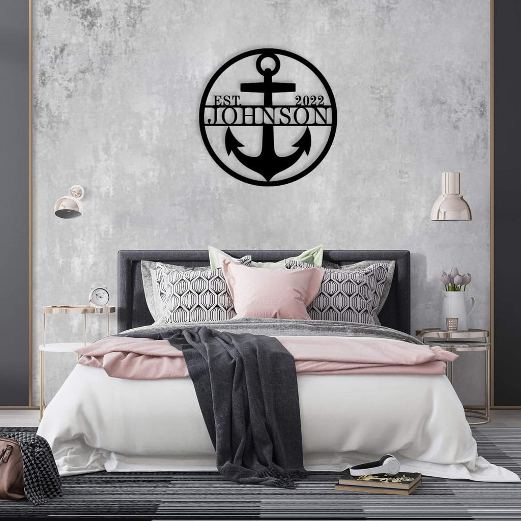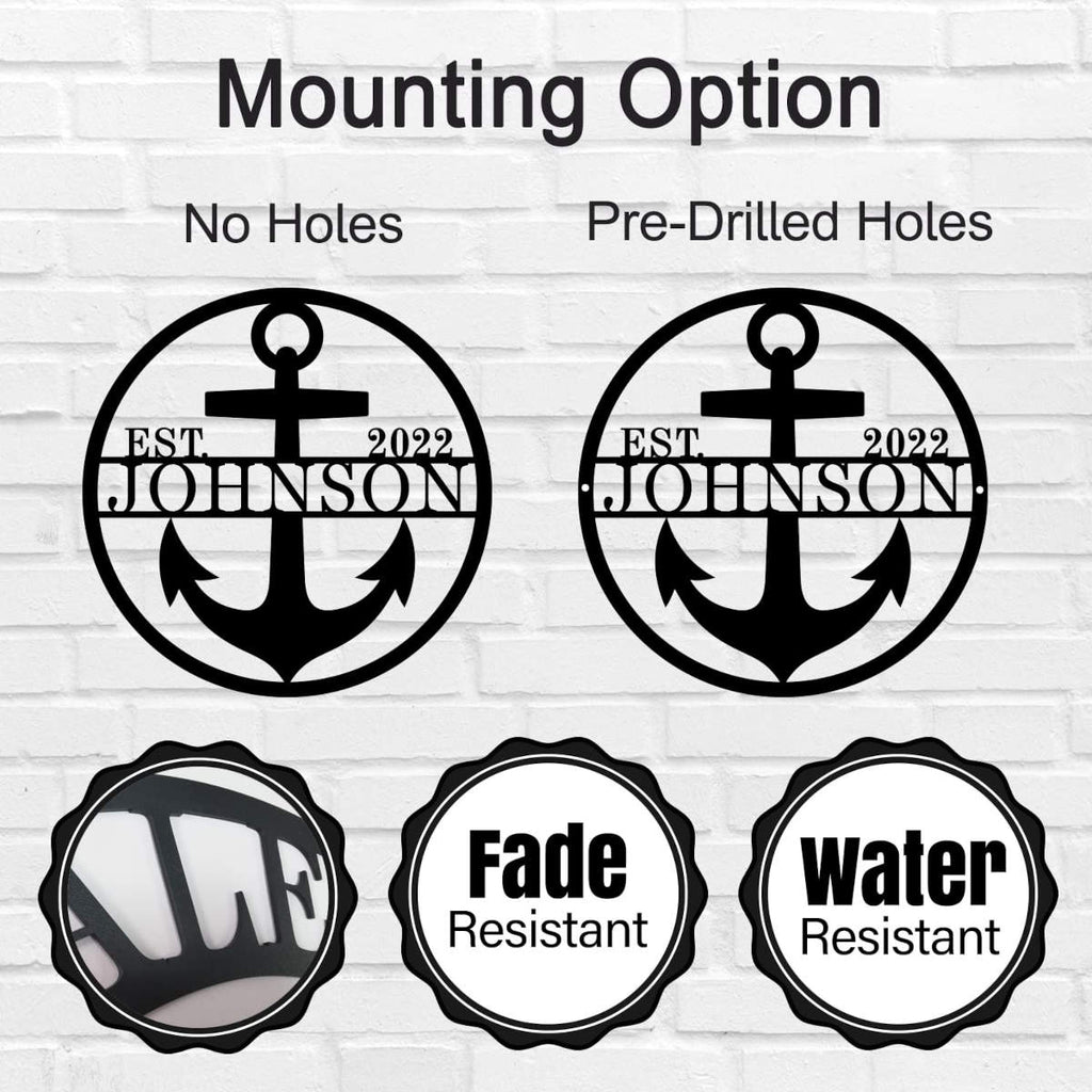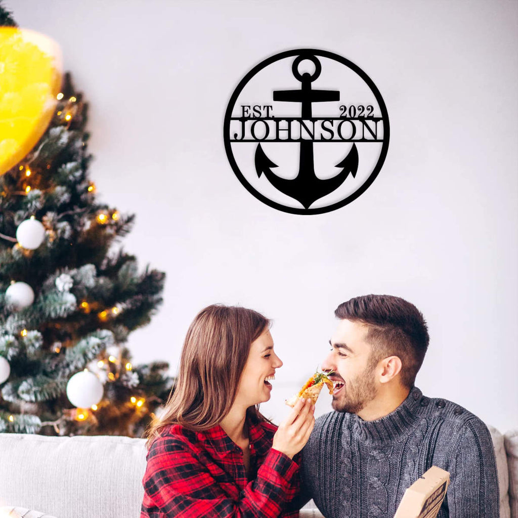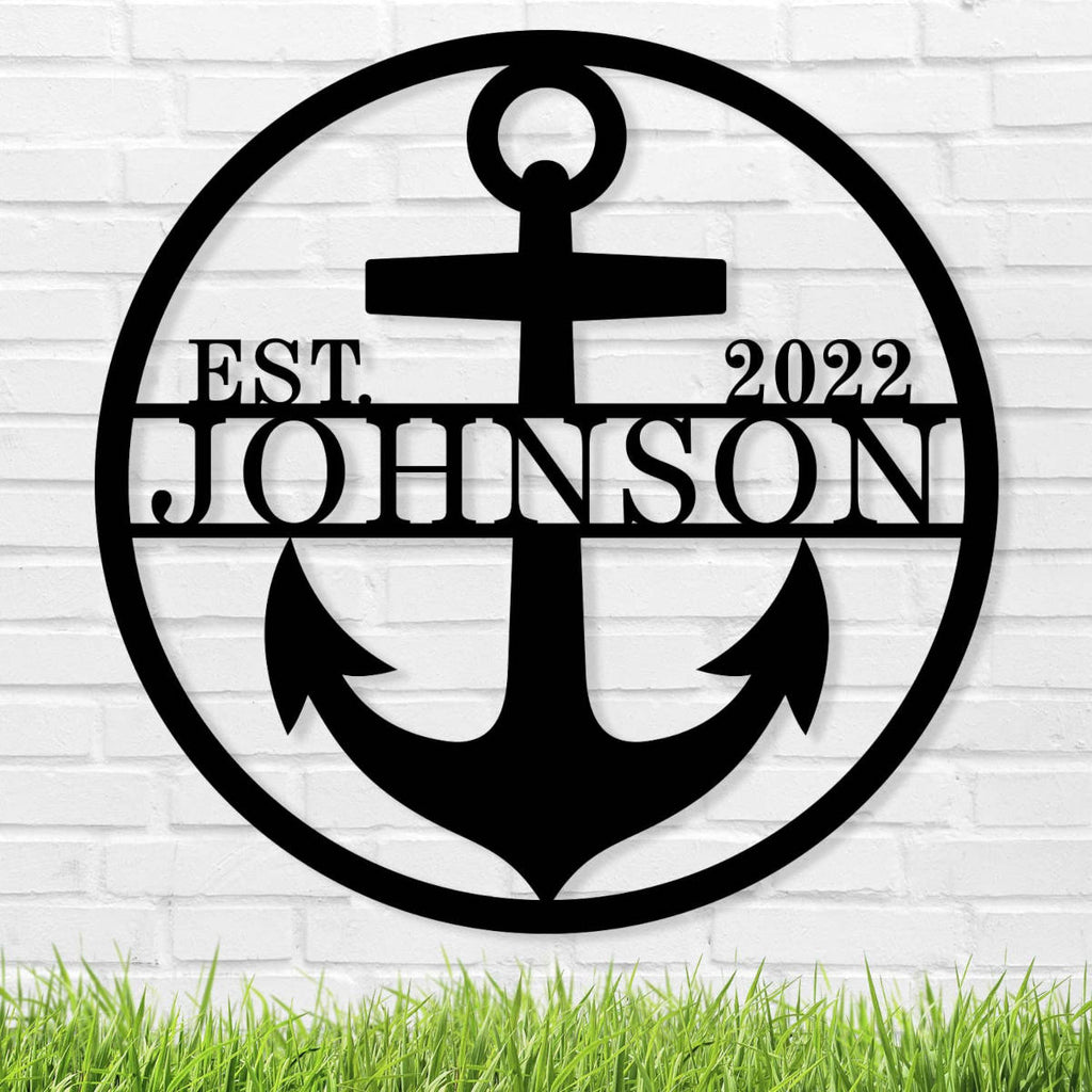 Enhance your home decor with our Custom Anchor Sign, made from durable 14-gauge steel. Perfect for indoor and outdoor spaces, this personalized metal wall art is laser-cut for precision and finished with a powder coat for long-lasting beauty. The design features a bold anchor with customizable text, allowing you to add your family name and established date. Available in multiple sizes and colors, this sign is designed to withstand the elements and add a nautical touch to any space. Pre-drilled holes make it easy to mount on your wall, creating a stunning focal point in your living room, patio, or garden. Whether you're celebrating a special occasion or simply adding a personal touch to your decor, our Custom Anchor Sign is the perfect choice.