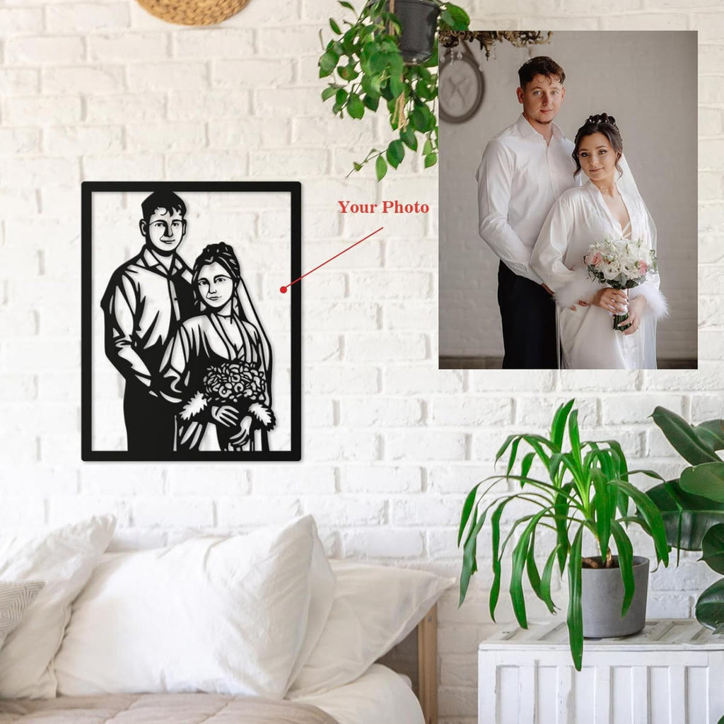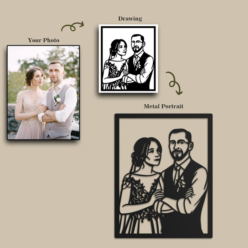 Celebrate your love with a stunning Custom Couple Metal Portrait, handcrafted from high-quality steel. Simply upload your favorite photo, and we’ll transform it into a bold laser-cut silhouette, finished with a durable powder coat in your chosen color. Each piece is precisely cut, cleaned, and coated for long-lasting beauty indoors or outdoors. Multiple sizes and colors are available, and pre-drilled holes make wall mounting effortless. Perfect as a wedding gift, anniversary decoration, or personalized keepsake that captures your special bond forever.