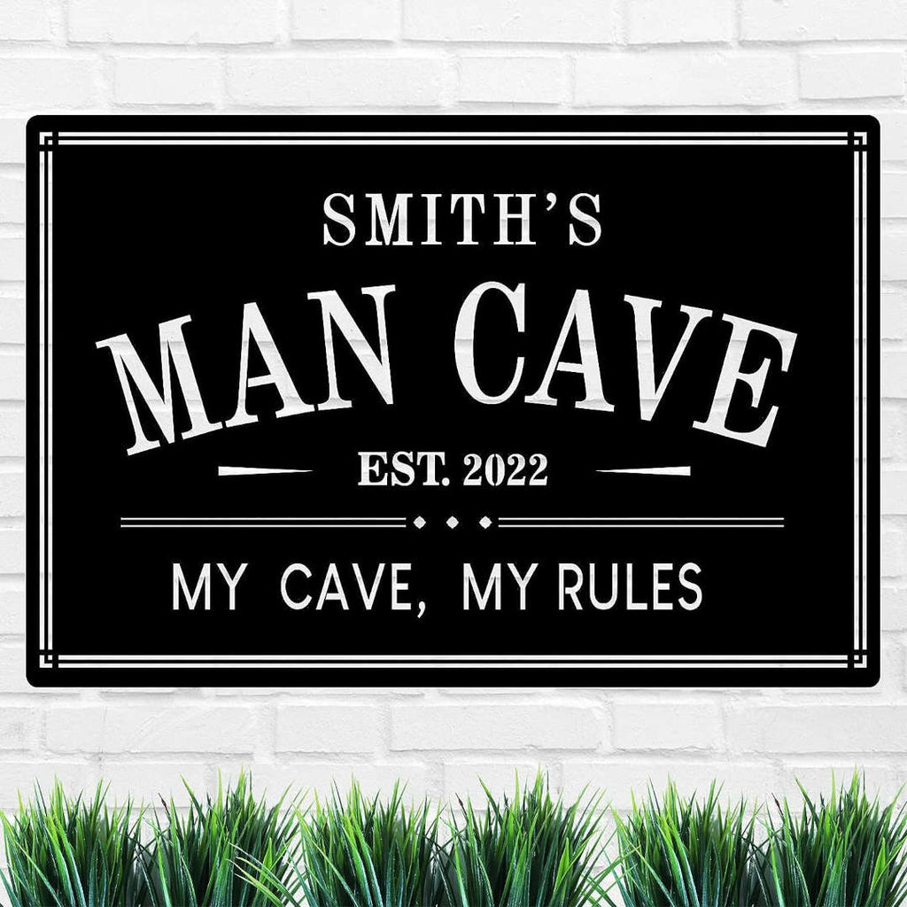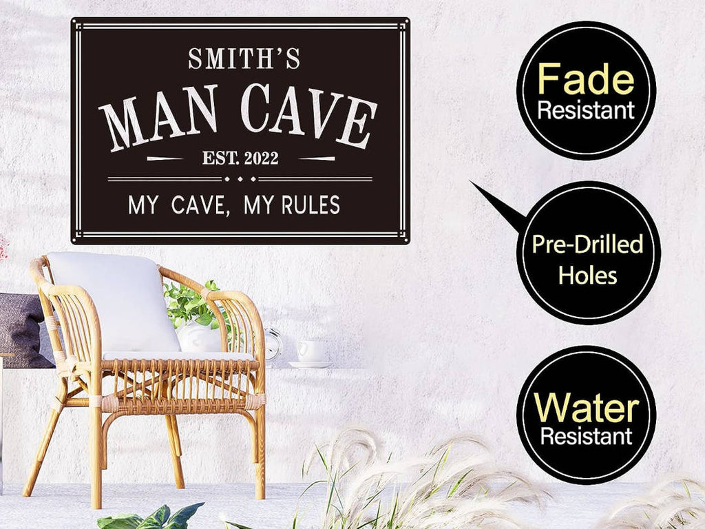 Elevate your man cave with this Personalized Man Cave Sign. Crafted from robust 14-gauge steel, it undergoes precision laser cutting, meticulous surface cleaning, and a protective powder coat finish. Customize your sign with your name, established year, or any man cave message. Available in various sizes and colors, this sign adds a personalized touch to your space.