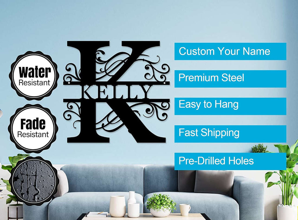 Enhance your home decor with this elegant Custom Metal Initial Sign, designed to add a personal touch to any space. Crafted from high-quality 14-gauge steel, this sign features your chosen initial prominently displayed with intricate scrollwork for a sophisticated look. Using precision laser cutting, each piece is expertly finished with a durable powder coat to resist rust and corrosion. Perfect for both indoor and outdoor use, this custom sign is available in multiple sizes and colors, ensuring it fits perfectly with your decor style. The pre-drilled holes make it easy to mount on any wall, providing a hassle-free installation experience. Personalize your sign with your name or a special word, making it a unique gift for weddings, anniversaries, housewarmings, or any special occasion. This versatile sign is not just a decor piece but a cherished keepsake that adds a touch of elegance and personalization to your home.