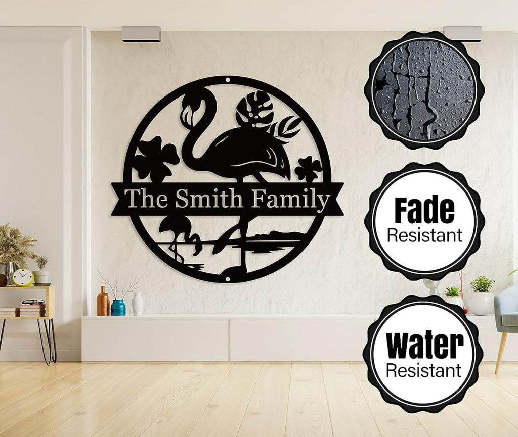 Introducing our Custom Flamingo Metal Sign, the perfect personalized addition to any home or garden. Made from durable 14-gauge steel, this sign is meticulously crafted using laser cutting technology, ensuring precise details and a smooth finish. After cutting, each sign undergoes thorough surface cleaning and a powder coat process to enhance its longevity and resistance to the elements. Customize the text to reflect your family name or any special message. Available in multiple sizes and colors, this sign can be easily mounted with pre-drilled holes, making installation a breeze. Whether you're looking to add a touch of tropical flair to your home decor or searching for a unique gift, this flamingo metal sign is an ideal choice.