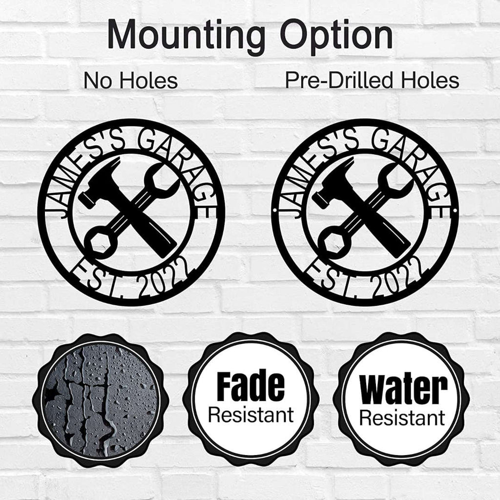 Our Custom Garage Metal Sign offers complete personalization, allowing you to customize the text to feature your name or any message. Available in multiple sizes and colors, you can choose the perfect combination to match your decor. Additionally, pre-drilled holes make wall mounting easy and convenient.