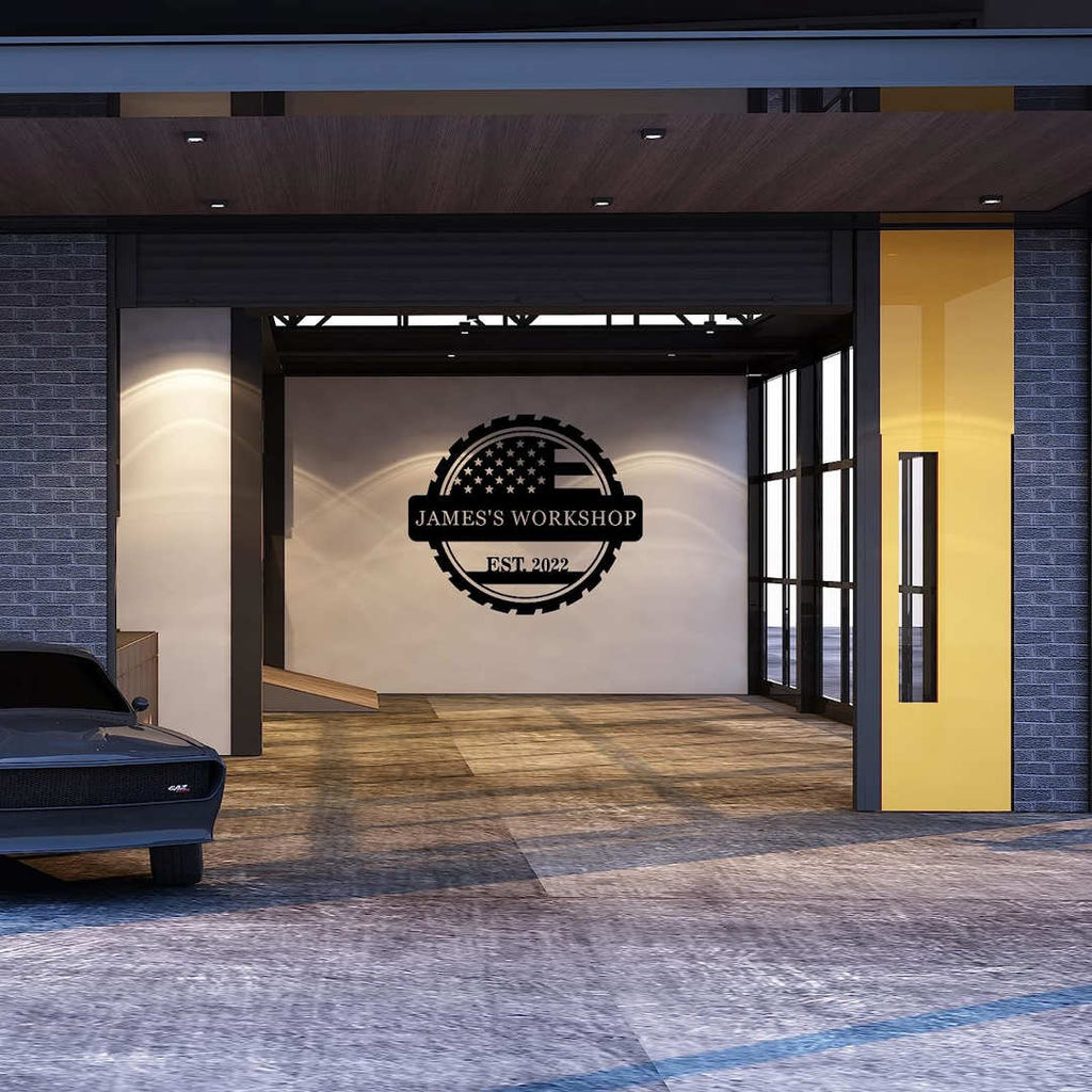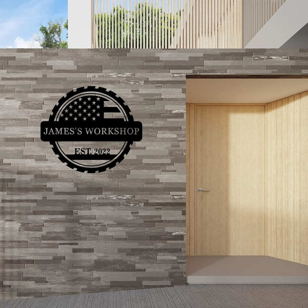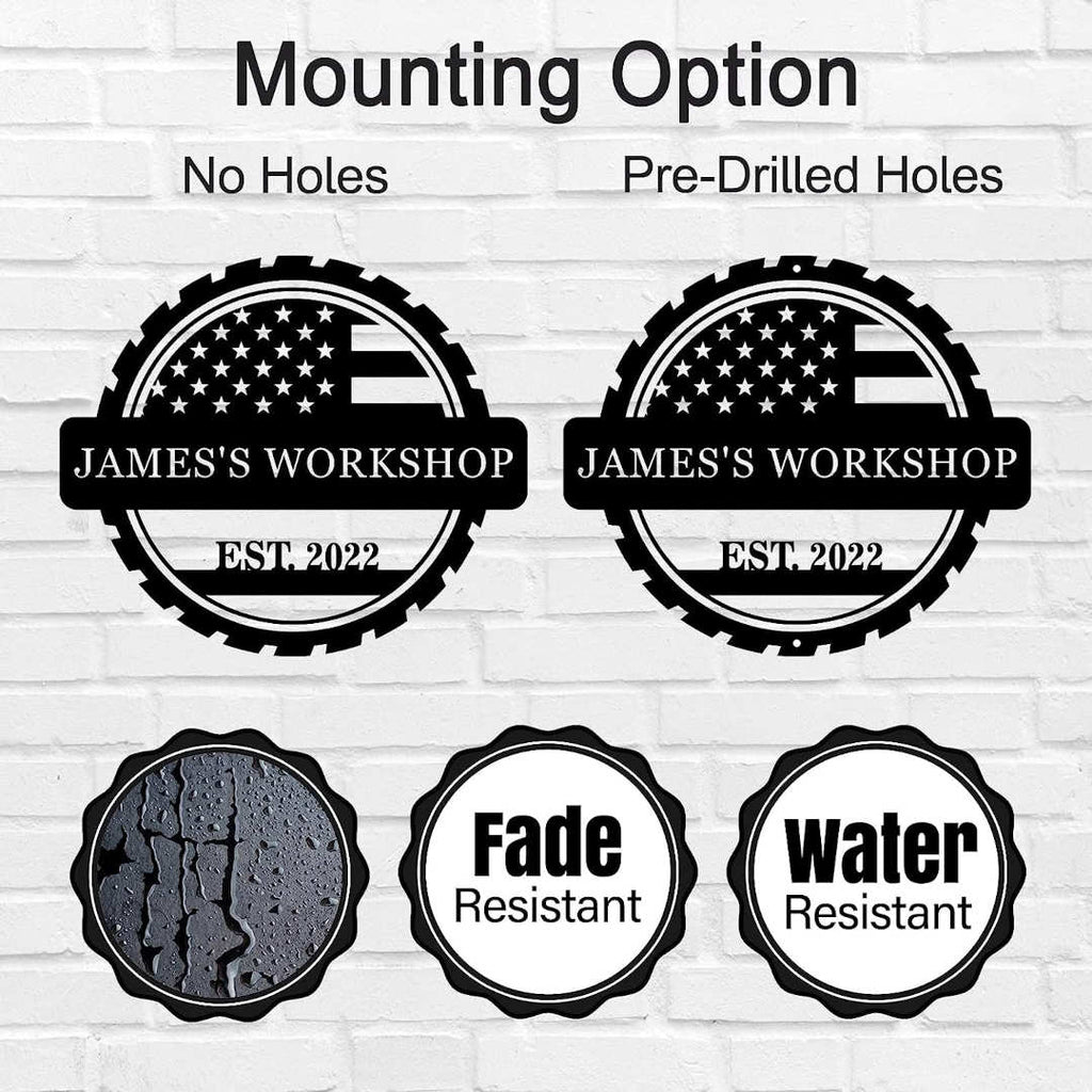 Introducing our Custom Metal Workshop Sign, a perfect blend of style and durability designed to add a personal touch to your space. Made from 14-gauge steel, this sign features a sleek American flag design with customizable text, making it an ideal addition to any workshop or garage. Each piece is precision-cut using advanced laser technology and powder-coated for a flawless finish that resists rust and corrosion. Available in multiple sizes and colors, this sign is easy to install with pre-drilled holes, ensuring a perfect fit for your wall. Whether you're looking to showcase your pride or give a unique gift, this sign offers both functionality and aesthetic appeal.