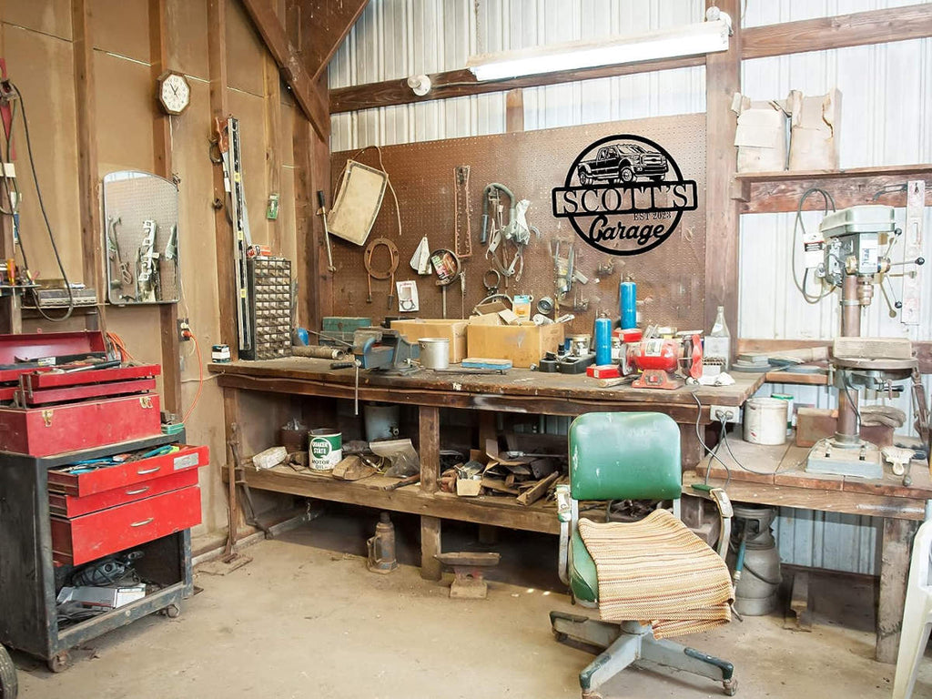 Enhance your garage's aesthetic with our Custom Metal Garage Sign. Crafted from premium 14-gauge steel, this personalized sign is designed to withstand the test of time. Each sign is meticulously laser-cut for precision, then carefully cleaned and finished with a durable powder coat, ensuring it remains rust-free and maintains its sleek appearance. The central design features a detailed pickup truck, perfect for car enthusiasts, with customizable text that lets you add your name and establishment year. Available in multiple sizes and colors, this sign comes pre-drilled for easy wall mounting, making it an ideal addition to any garage, workshop, or man cave.