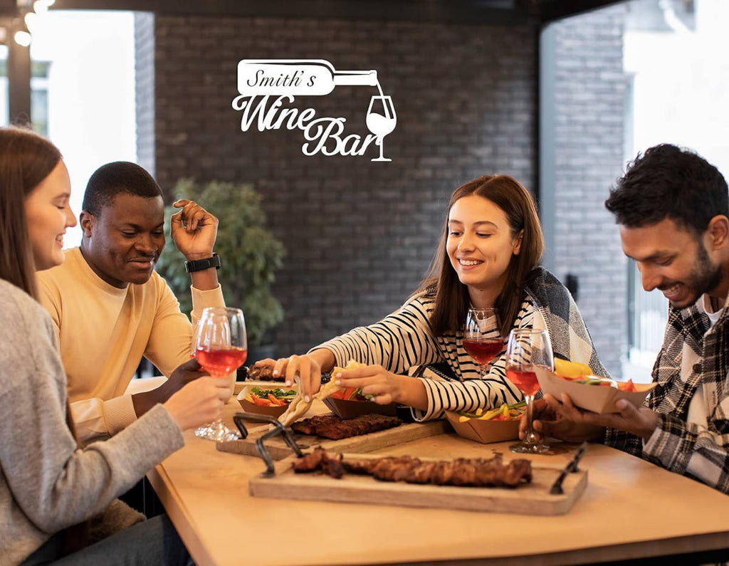 Elevate your wine bar or home décor with this custom metal sign featuring an elegant wine bottle pouring into a glass, alongside your personalized text. Crafted from premium steel and precision laser-cut, each sign is powder coated in your choice of color for lasting durability and a sleek finish. Whether you're decorating a kitchen, bar area, or outdoor patio, this sign makes a bold and stylish statement. Available in multiple sizes and colors, and easy to mount with optional pre-drilled holes. A perfect personalized gift for wine lovers or home entertainers.