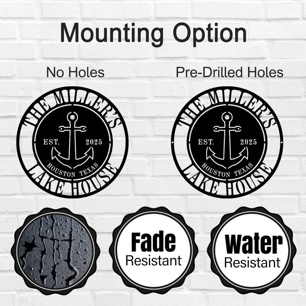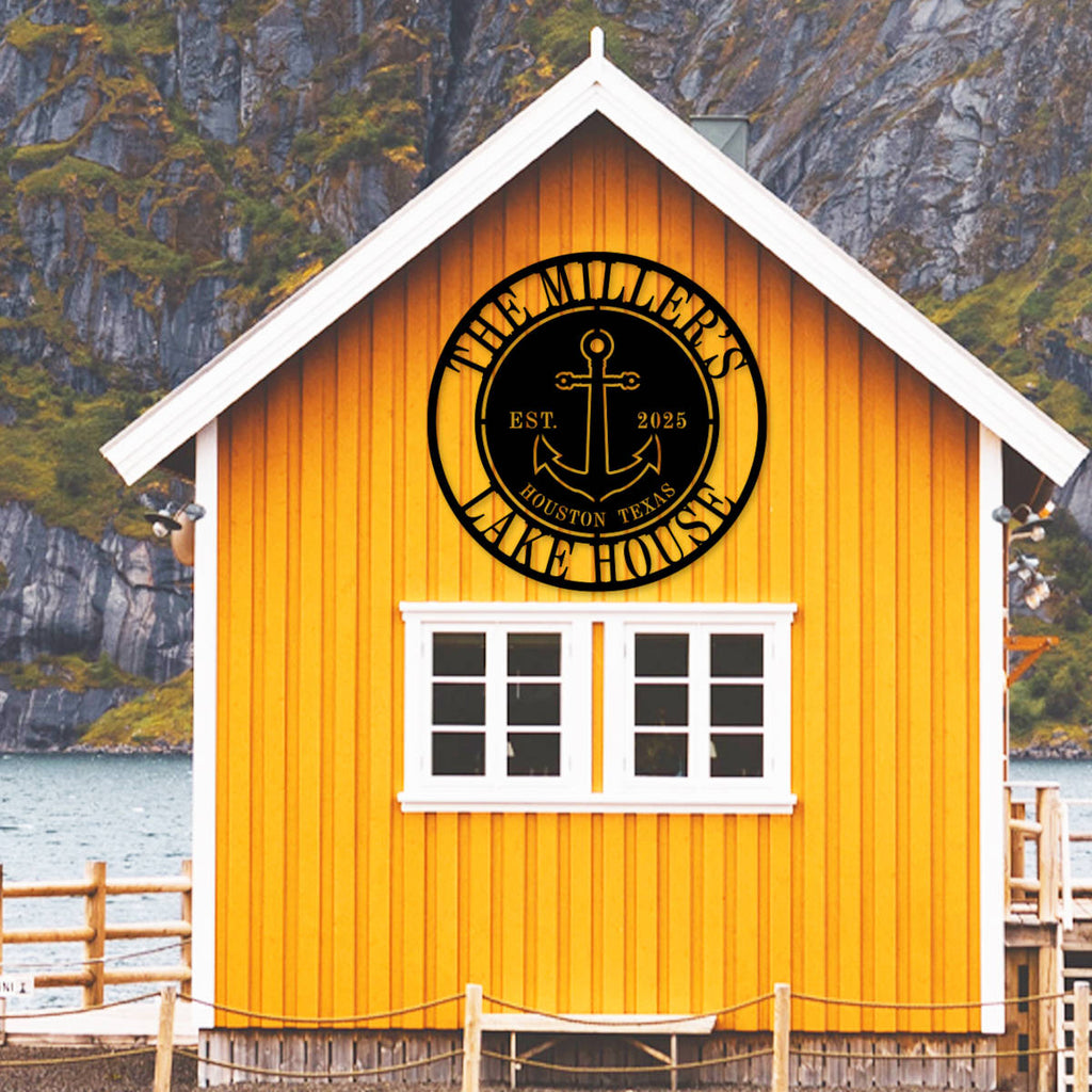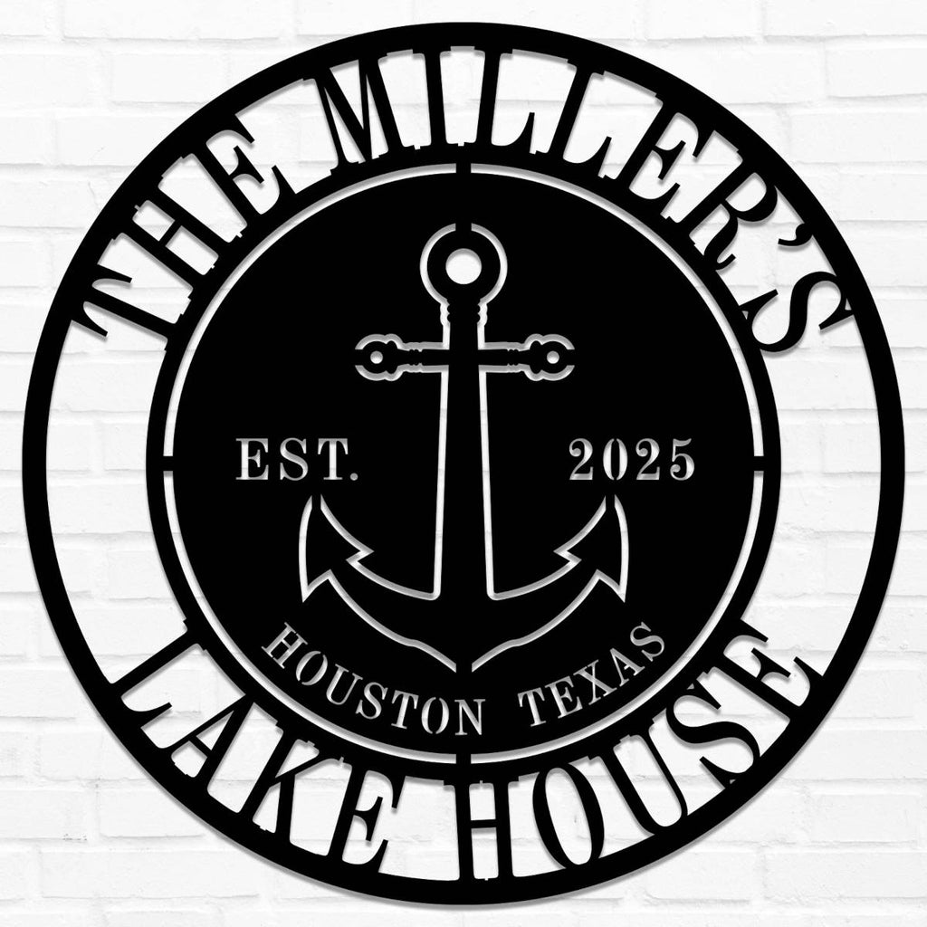 Create a one-of-a-kind Custom Anchor Metal Sign to celebrate your family, lake house, or coastal retreat. Made from premium steel, this round sign features a detailed anchor design surrounded by your personalized text — perfect for displaying your name, location, and year. Each piece is laser-cut for clean precision and finished with a durable powder coat in your chosen color. Designed to last for years indoors or outdoors, it adds a timeless nautical touch to any space. Multiple sizes and colors are available, and pre-drilled holes make installation simple and secure.