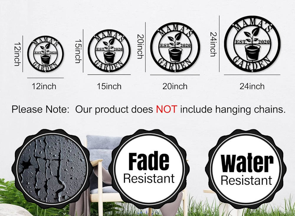 Elevate your garden's charm with our Personalized Hanging Garden Signs. Crafted from 14-gauge steel, each circular sign features a budding plant at the center and customizable details around the edge, such as names and established years. Choose from two designs: one with a top hole for hanging (ideal for 15 inches and below) and another with side holes for wall mounting. The laser-cut process ensures precision, while powder coating adds durability. Transform your outdoor space or surprise a loved one with a unique Mother's Day gift.