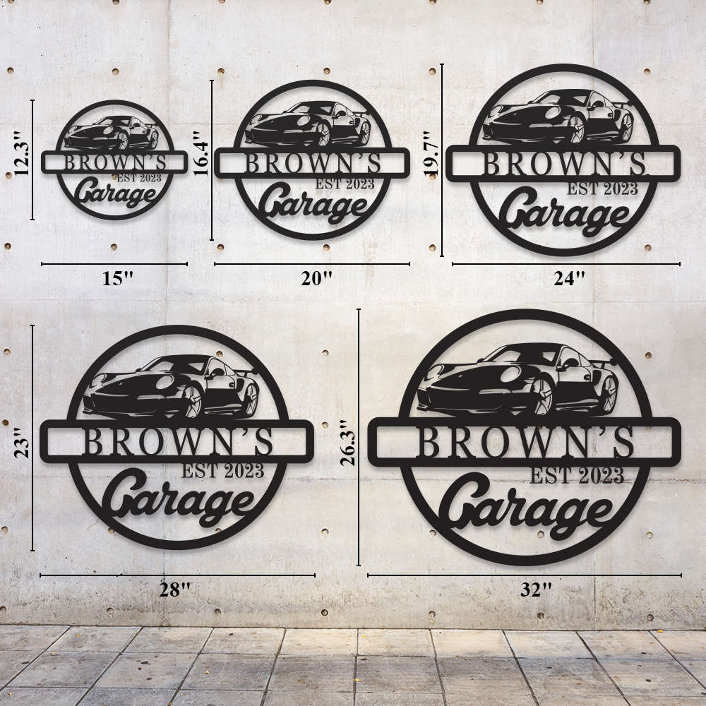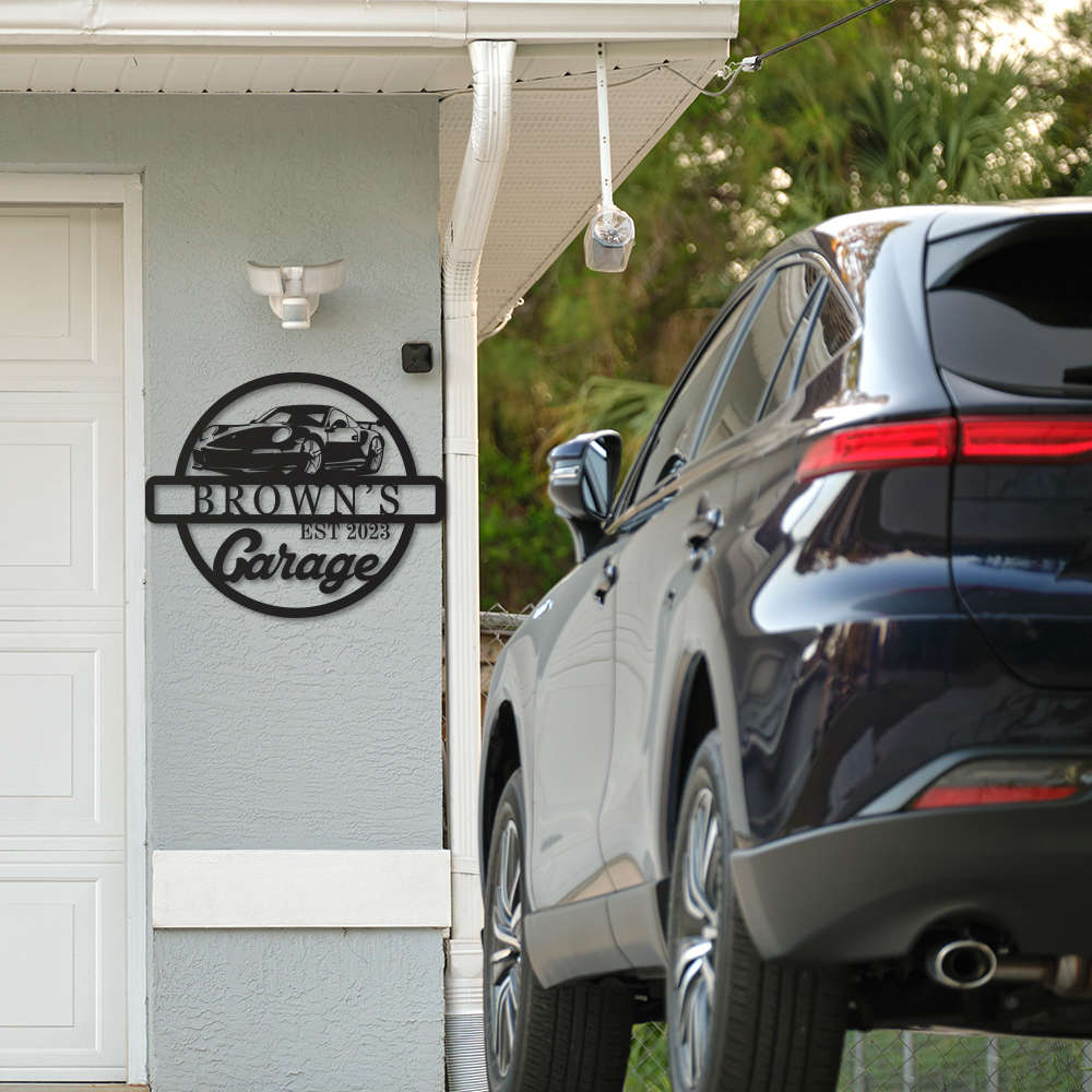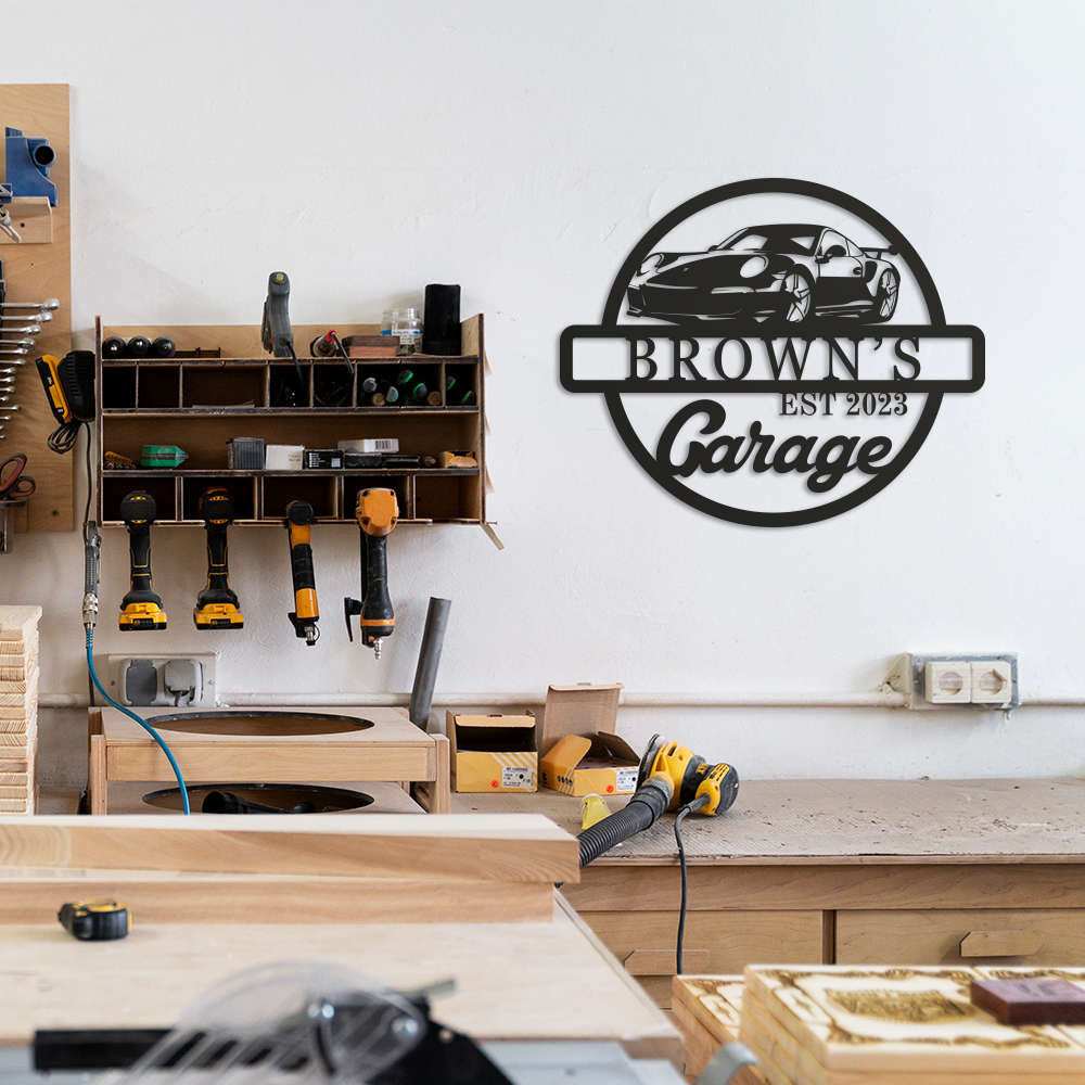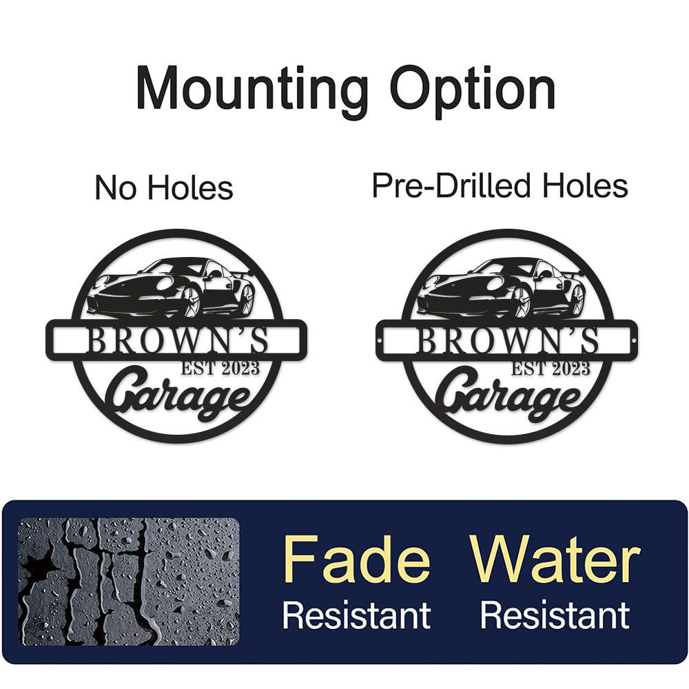 Show off your love for speed and style with this personalized garage metal sign. Crafted from premium steel and laser-cut with precision, the design features a sleek sports car silhouette and your custom garage name with optional established year. Powder-coated for lasting durability, this sign is built for both indoor and outdoor display. Whether you're upgrading your home garage, car enthusiast space, or man cave, this bold piece adds a personal and powerful touch. Choose from multiple sizes and colors, and enjoy the convenience of optional pre-drilled holes for easy mounting. A must-have for any true car lover.