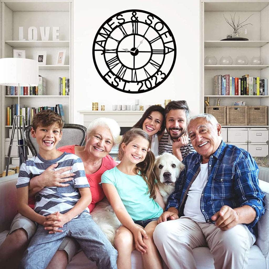 Choose from various size and color options to ensure a perfect match with your interior design. Whether adorning your own space or sharing it as a thoughtful gift, this clock brings a touch of elegance and personalization.